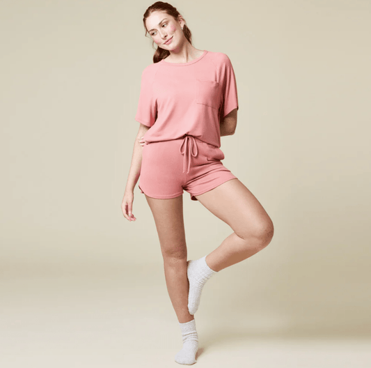 Dream Slouchy Tee Top with Shorts Lounge Set - Copper Rose