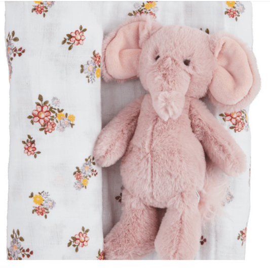 Floral Swaddle and Rattle Set