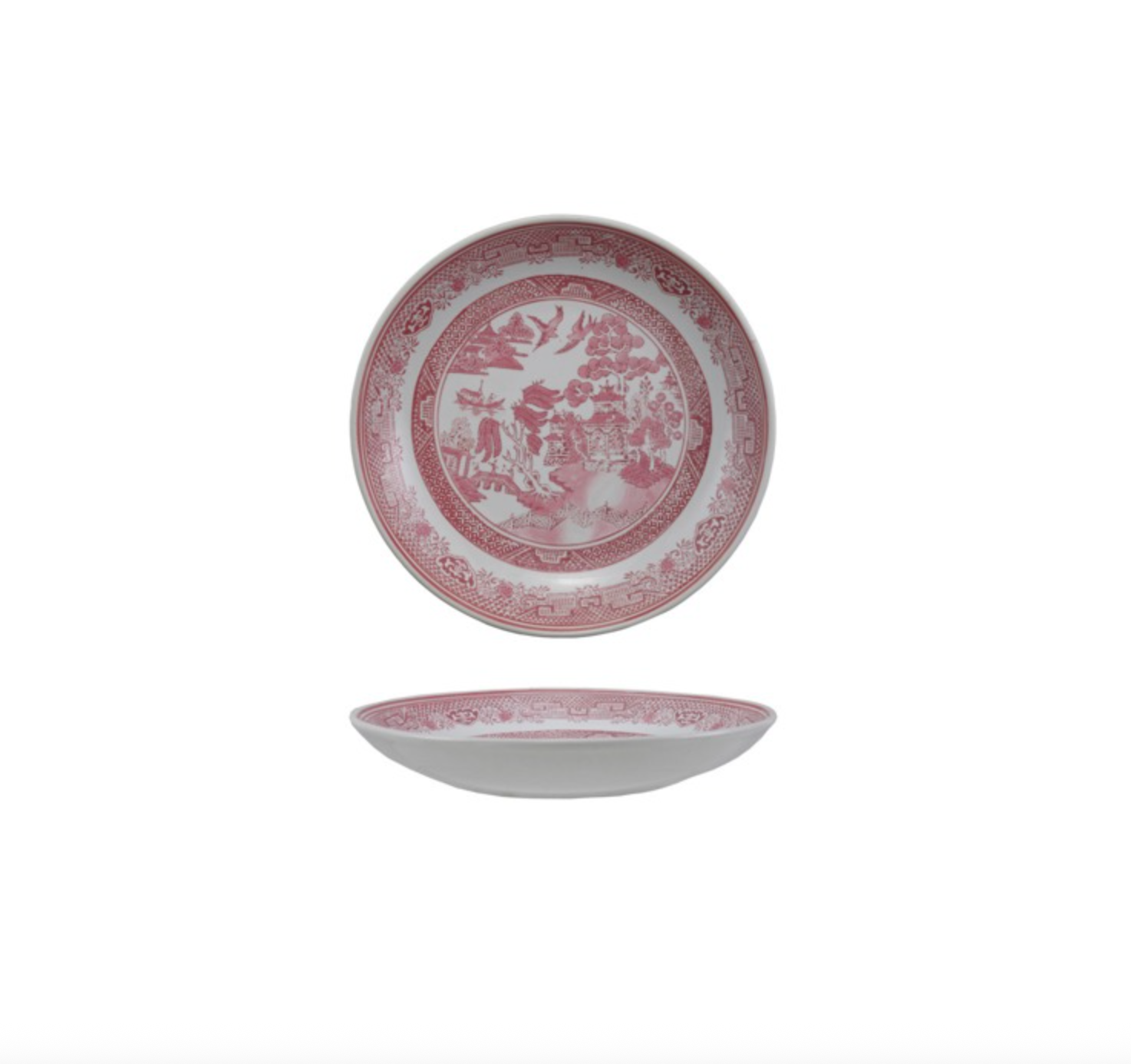 This 14" round hand-stamped stoneware plate features a beautiful landscape design in pink and white. Each plate is unique, as they are hand-stamped by skilled artisans. The intricate details of the landscape design add a touch of elegance to any table setting. Made from high-quality stoneware, this plate is durable and perfect for everyday use. Whether you use it for serving meals or as a decorative piece, this plate is sure to impress your guests. Add a touch of sophistication to your dining experience with this stunning hand-stamped stoneware plate.