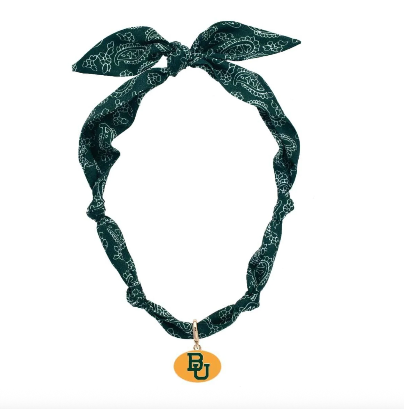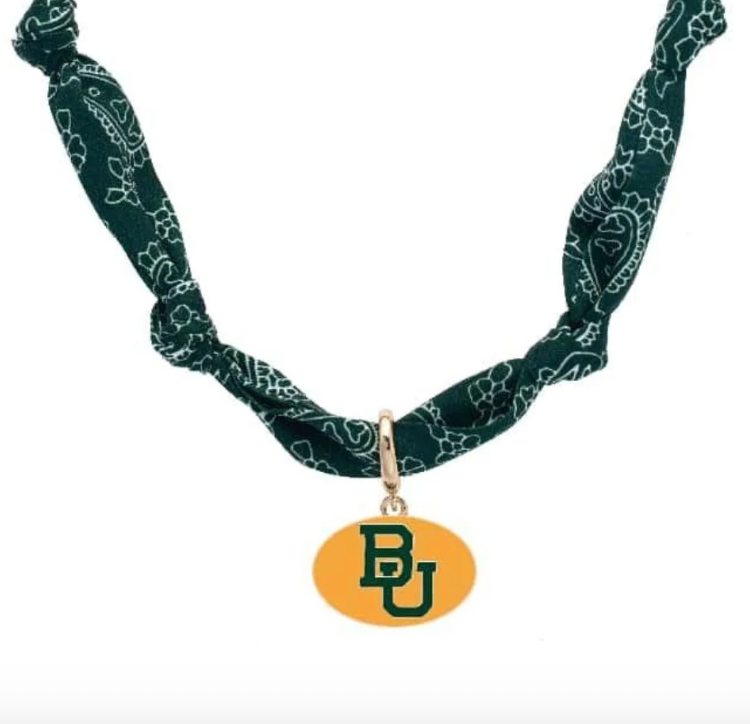 Blend fashion and fandom with the Bandana Scarf Necklace. This versatile accessory features a soft bandana scarf paired with a gold-plated logo pendant for a chic game day look.