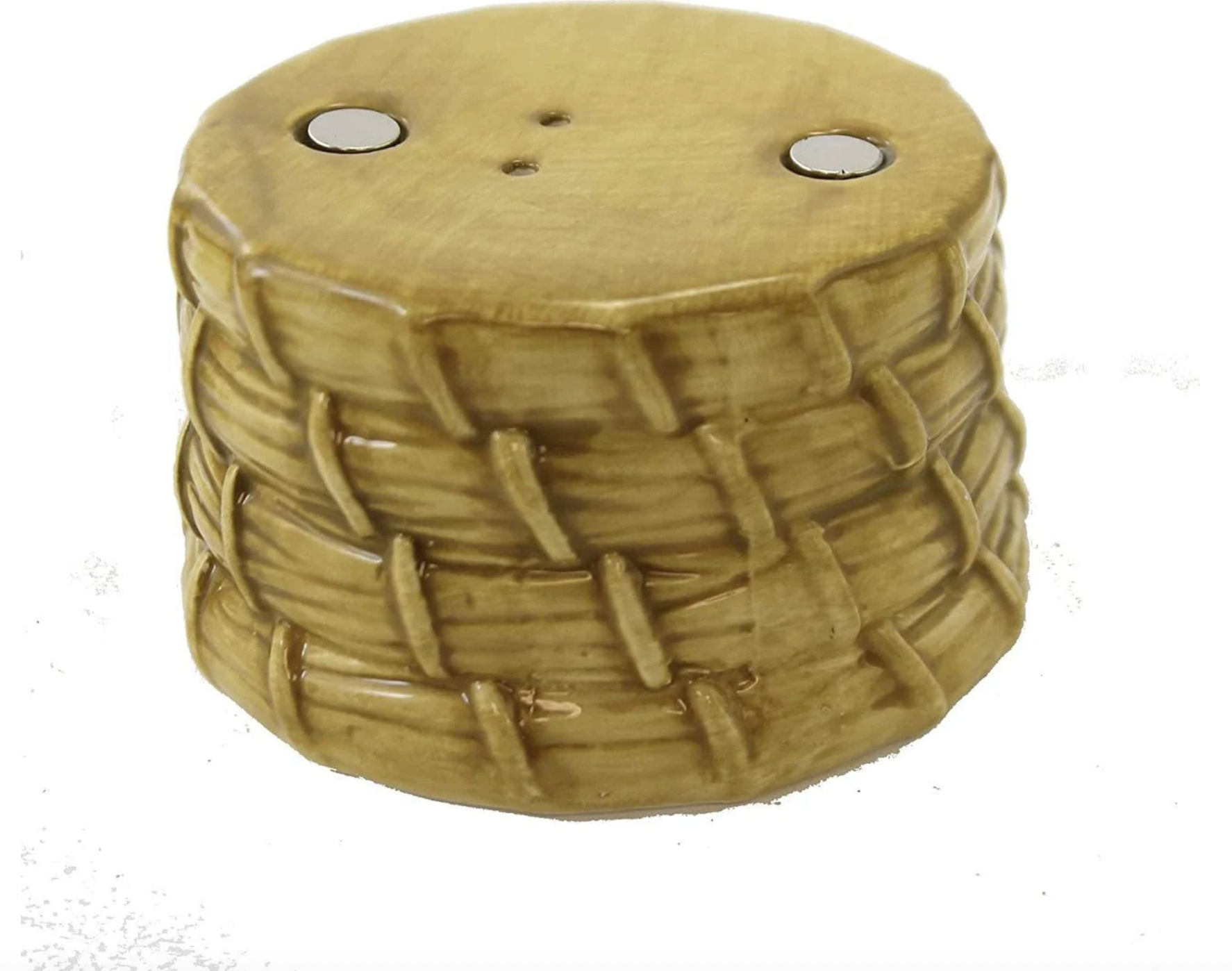 Introducing our Ceramic Beehive Salt and Pepper Shaker – a whimsical addition to your table settings. Standing at 3.75" high, this magnetic set features a charming bee atop a realistic bee skeep. Separate top and bottom pieces for easy refilling.