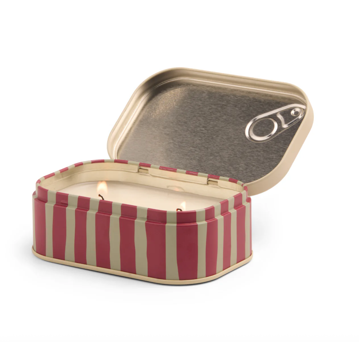4.5 oz. Two-Wick Tin Candles | With a faux pull-tab for added character inspired by sardine tins, these tin candles with hand illustrated artwork offer a cozy glow with its two wicks, and a comforting scent.