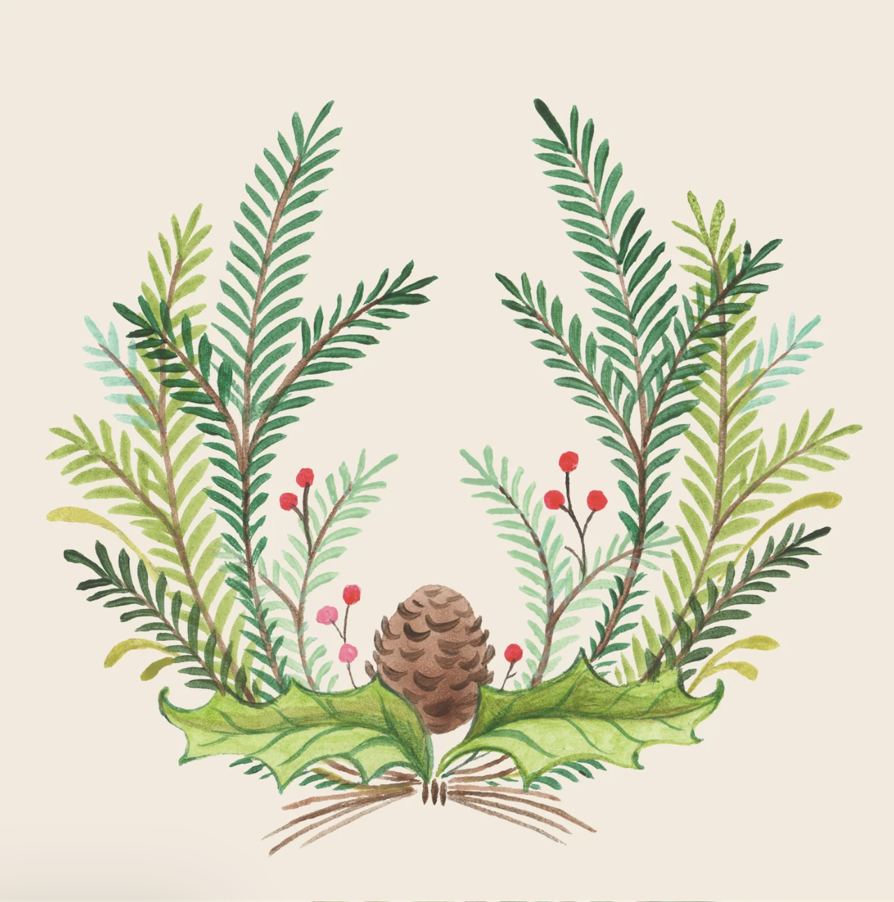 Based off the top selling Die-cut Christmas Sprigs Placemat and in collaboration with artist Elizabeth Foster, we've created a coordinating Christmas Sprigs Napkin! This winter floral with sprigs of laurel, berries and pinecones is the perfect finishing touch for your holiday cocktail party!