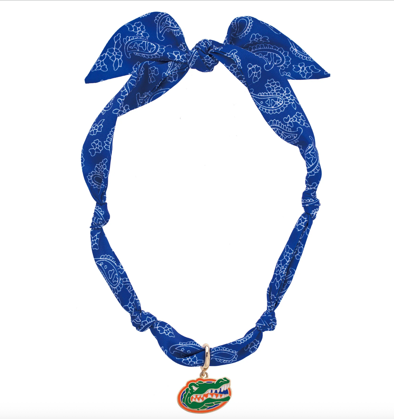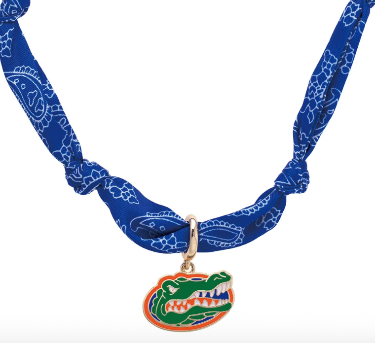 Blend fashion and fandom with the Bandana Scarf Necklace. This versatile accessory features a soft bandana scarf paired with a gold-plated logo pendant for a chic game day look.