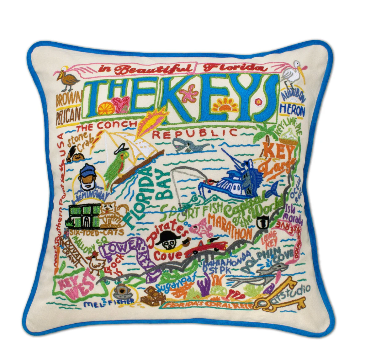 Florida Keys Hand-Embroidered Pillow