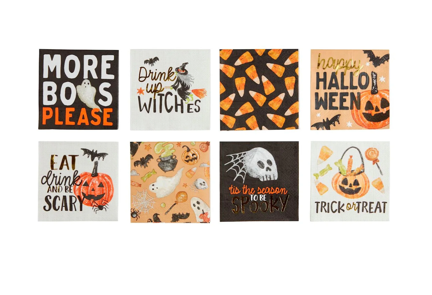 Add a touch of spooky fun to your party with Mud Pie's Halloween Paper Cocktail Napkins. These napkins feature playful and quirky designs that are sure to be a hit with your guests. Bring some Halloween spirit to your table with these festive napkins!