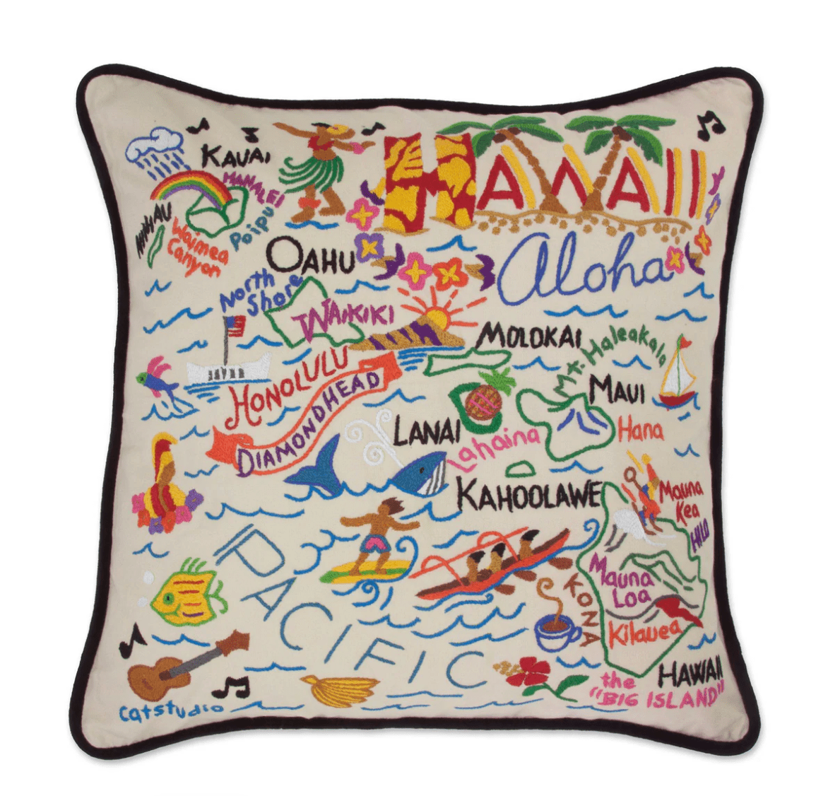 This pillow is entirely EMBROIDERED by HAND on 100% Organic Cotton. Amazingly, it can take up to one week to embroider one pillow! It is also unique in nature since each artisan incorporates a certain flair to their work, and every piece is signed on the tag. Created on tea-colored background, accented with black velvet piping, and finished with a 3-button closure. 20 x 20 inches.