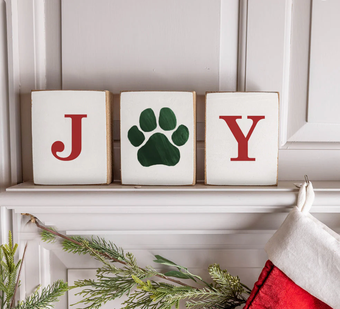 Joy Paw Print Decorative Wooden Block Bundle