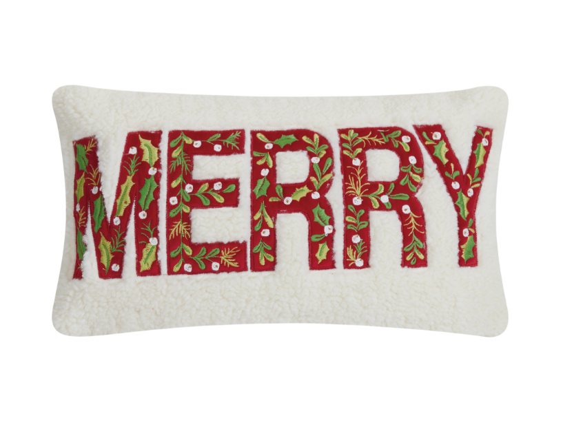 Merry Sherpa Embroidered Pillow