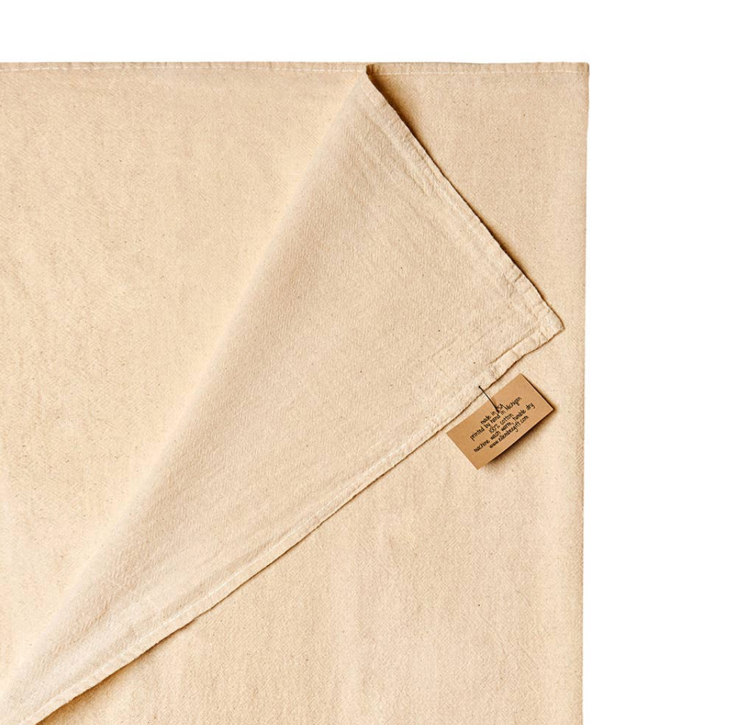 Our natural kitchen towels are sewn and printed by hand (by our all female team!) in Michigan from 100% unbleached cotton. They measure approximately 24" x 26" when opened up, can be thrown in the washer and dryer, and are more textured than our white towels.