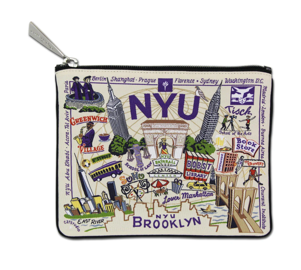 Our original design is uniquely woven (not printed!) into a handy-sized zip pouch - perfect for toting your keys, cash & credit cards, cosmetics - all your small necessities! Complete with chic zipper and pull, and our signature Collegiate black lining. Conveniently sized at 5x7 inches.