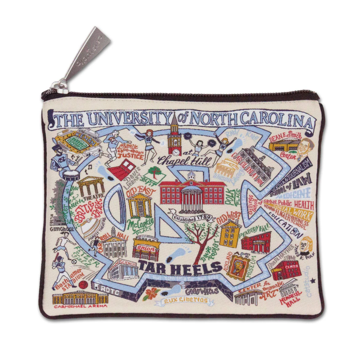 Our original design is uniquely woven (not printed!) into a handy-sized zip pouch - perfect for toting your keys, cash & credit cards, cosmetics - all your small necessities! Complete with chic zipper and pull, and our signature Collegiate black lining. Conveniently sized at 5x7 inches.