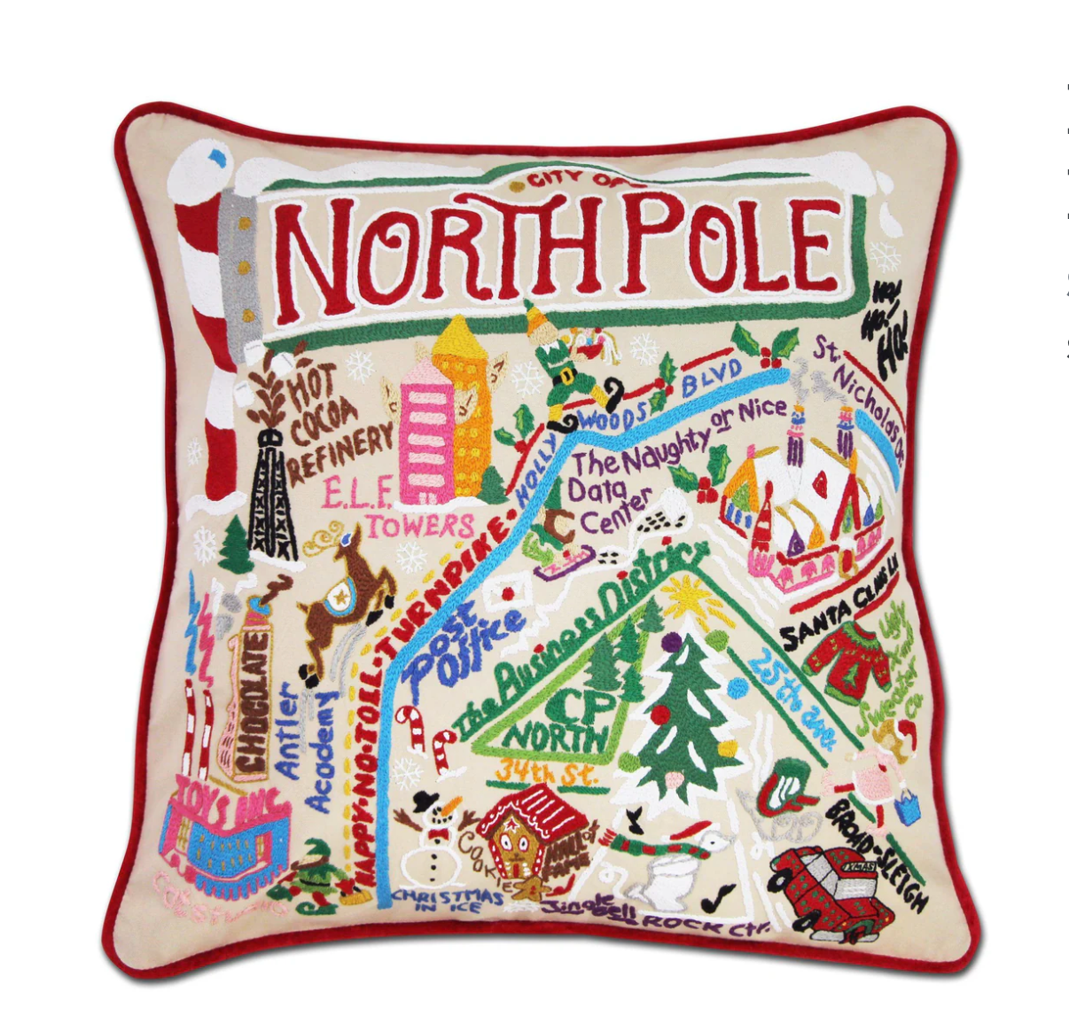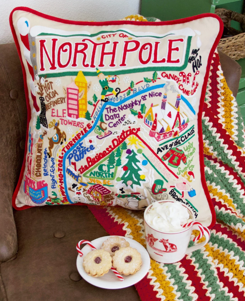 North Pole City Hand-Embroidered Pillow