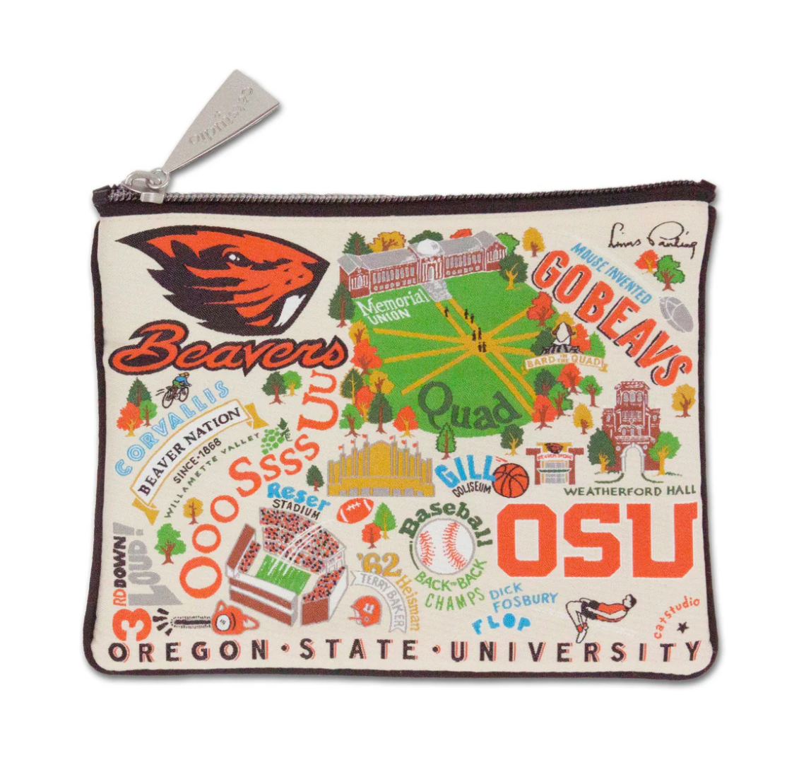 Our original design is uniquely woven (not printed!) into a handy-sized zip pouch - perfect for toting your keys, cash & credit cards, cosmetics - all your small necessities! Complete with chic zipper and pull, and our signature Collegiate black lining. Conveniently sized at 5x7 inches.