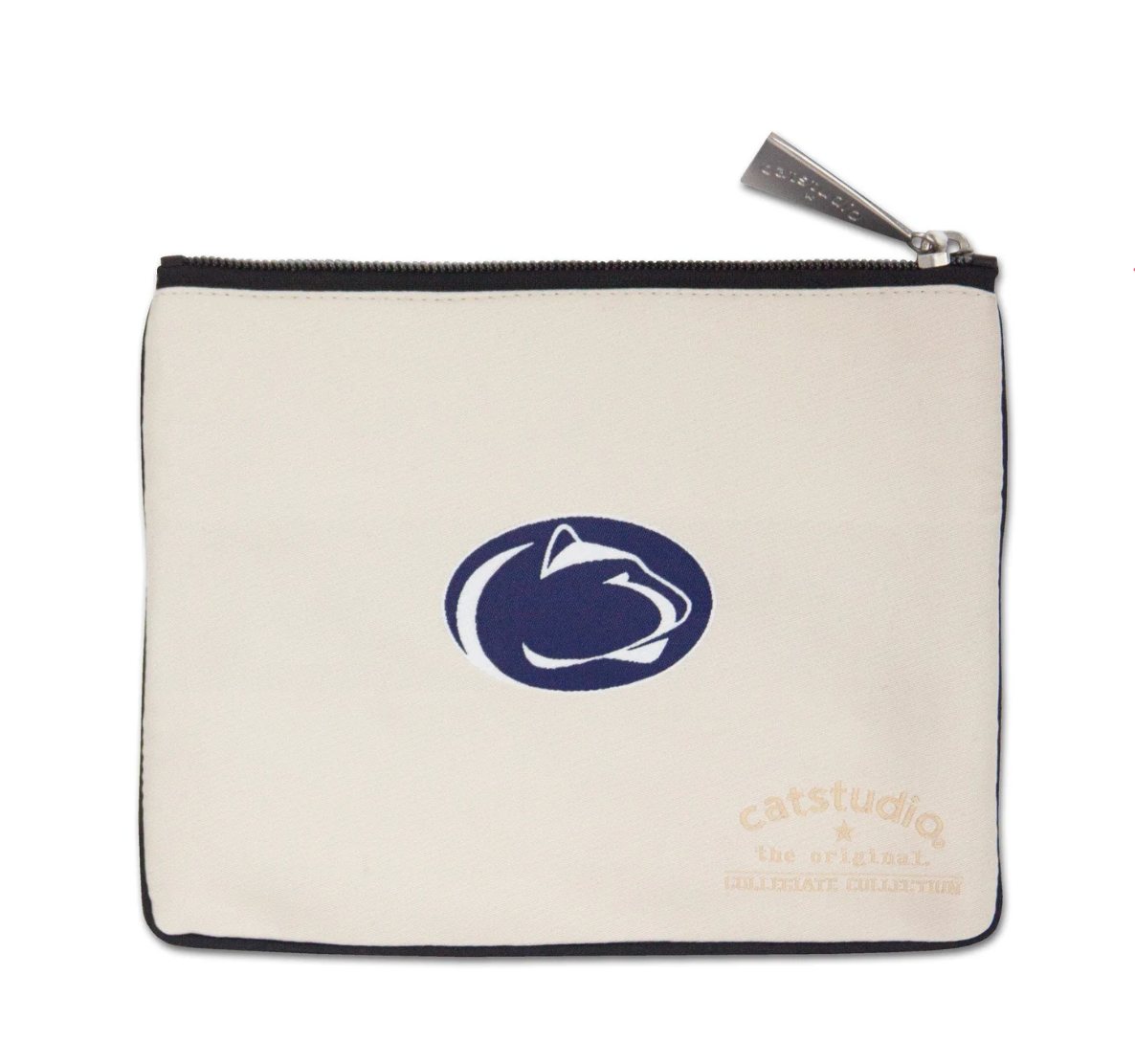 Our original design is uniquely woven (not printed!) into a handy-sized zip pouch - perfect for toting your keys, cash & credit cards, cosmetics - all your small necessities! Complete with chic zipper and pull, and our signature Collegiate black lining. Conveniently sized at 5x7 inches.