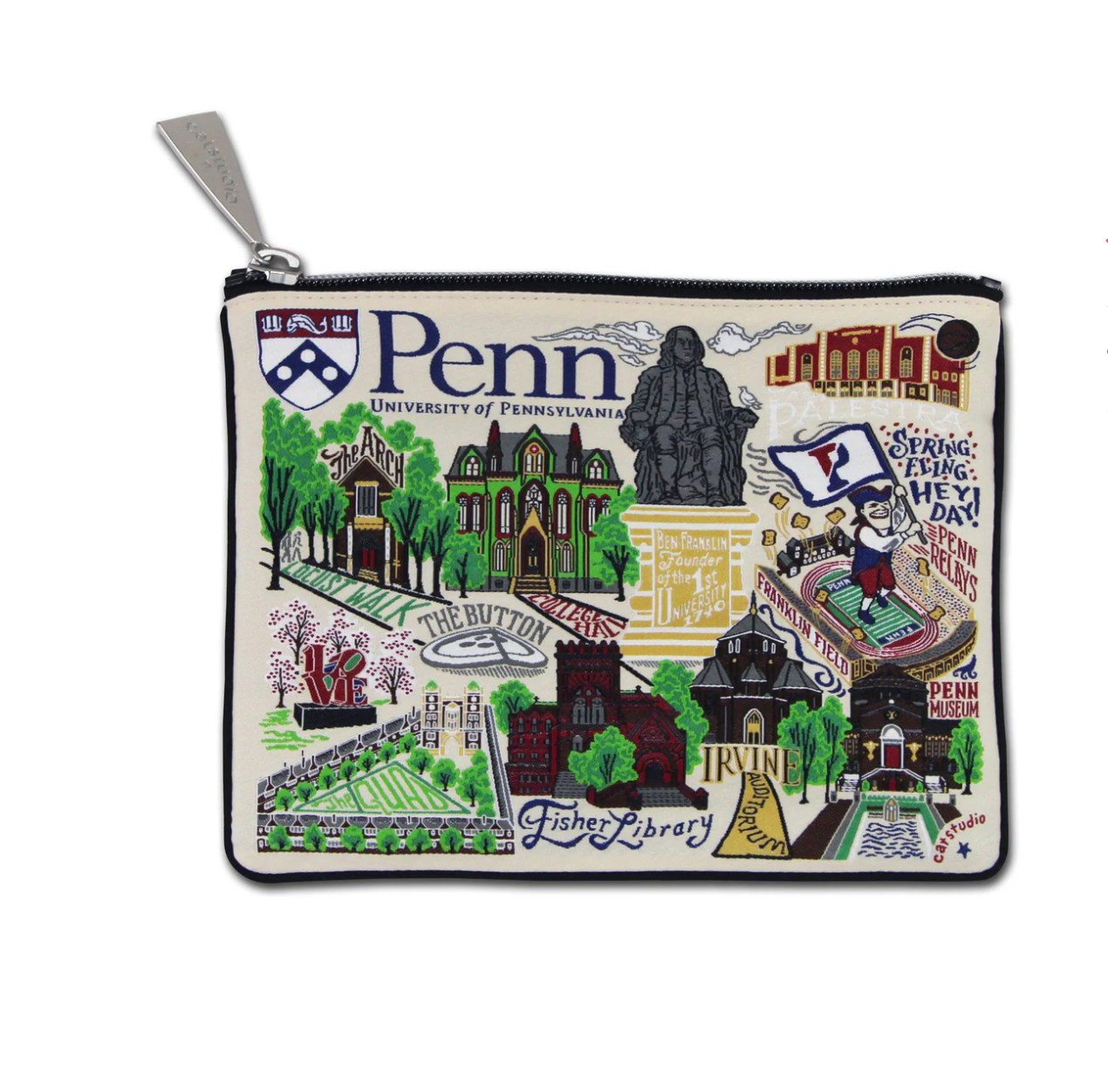 Our original design is uniquely woven (not printed!) into a handy-sized zip pouch - perfect for toting your keys, cash & credit cards, cosmetics - all your small necessities! Complete with chic zipper and pull, and our signature Collegiate black lining. Conveniently sized at 5x7 inches.