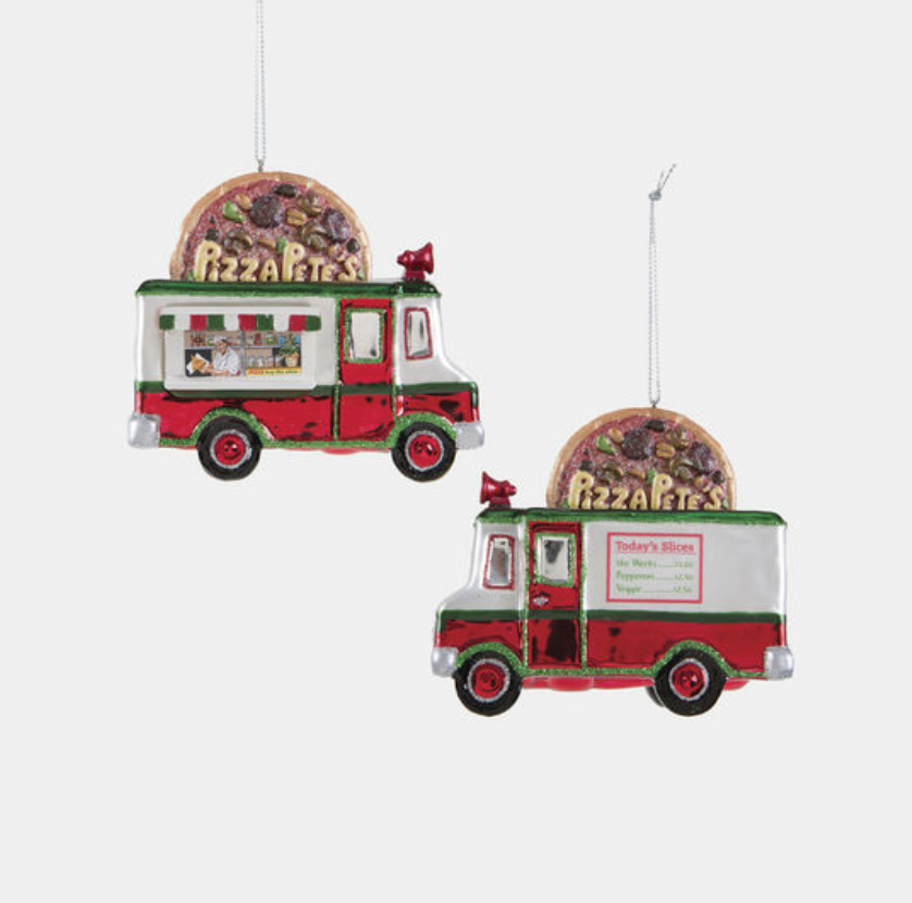 Pizza Truck Glass Ornament