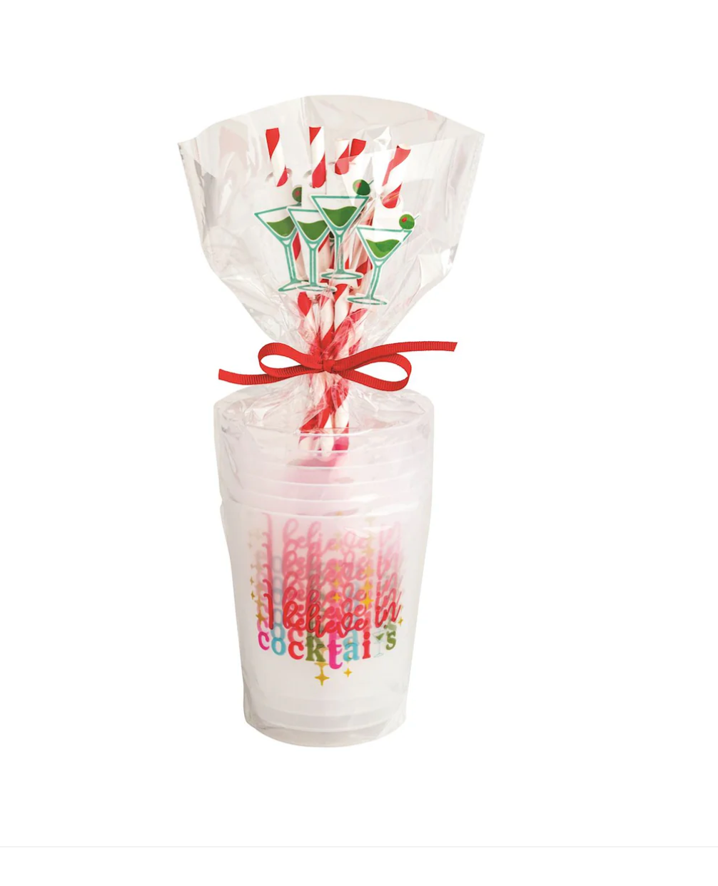 - Cup: 16 oz, Straw: 8 1/2", Plastic