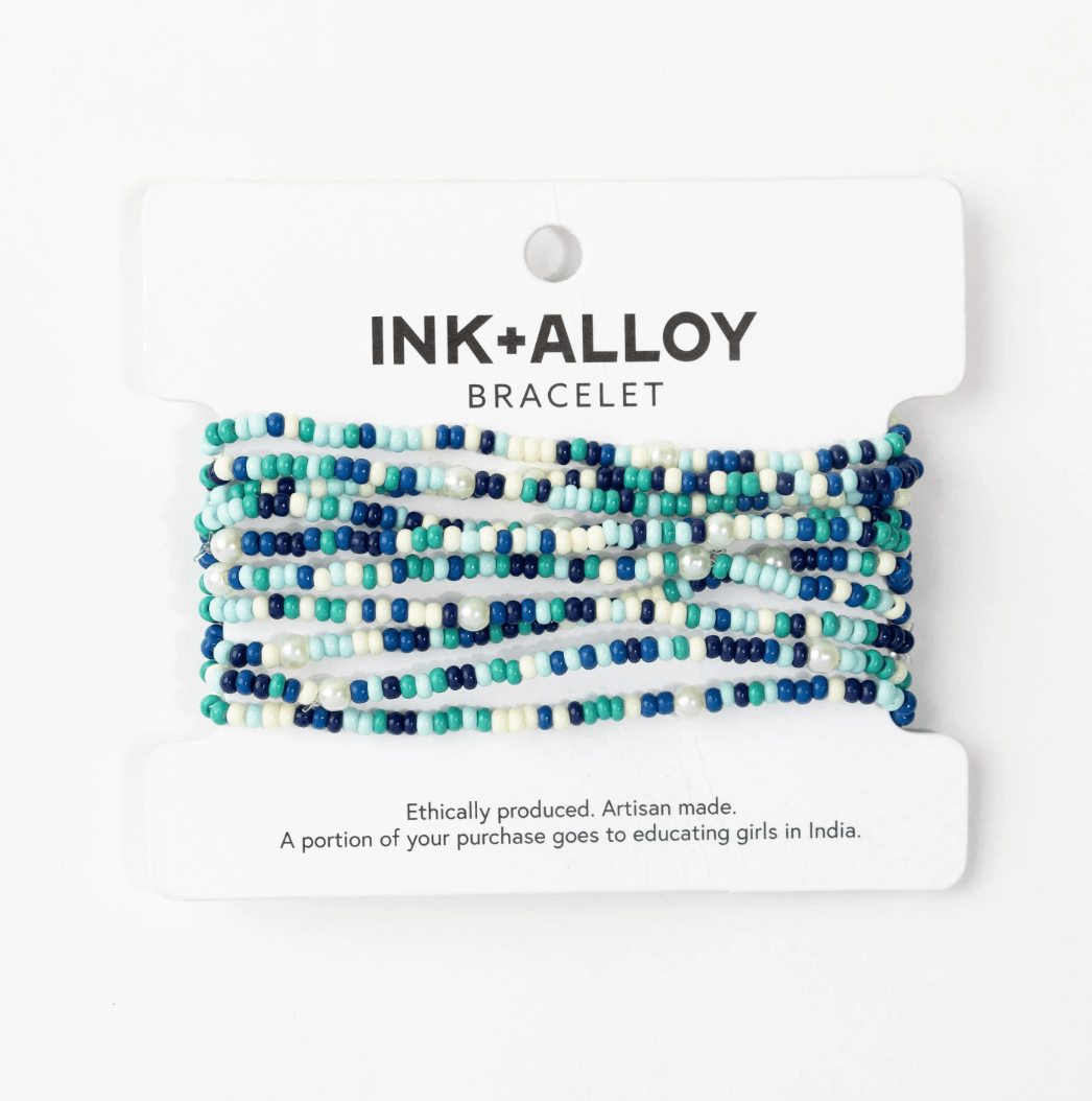 Sage Confetti Beaded 10 Strand Stretch Bracelets Blue