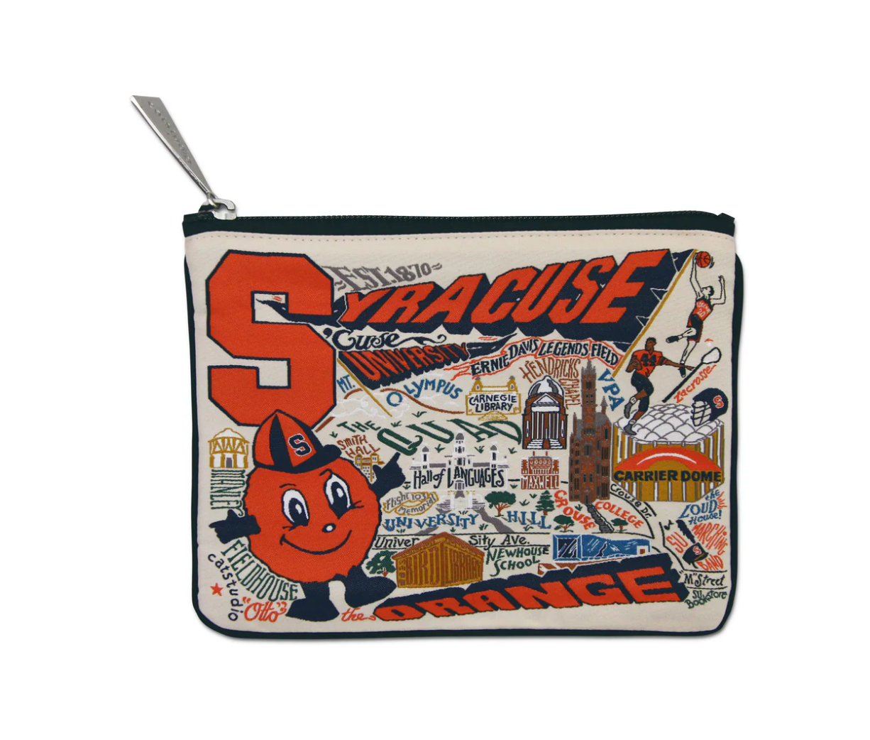 Our original design is uniquely woven (not printed!) into a handy-sized zip pouch - perfect for toting your keys, cash & credit cards, cosmetics - all your small necessities! Complete with chic zipper and pull, and our signature Collegiate black lining. Conveniently sized at 5x7 inches.