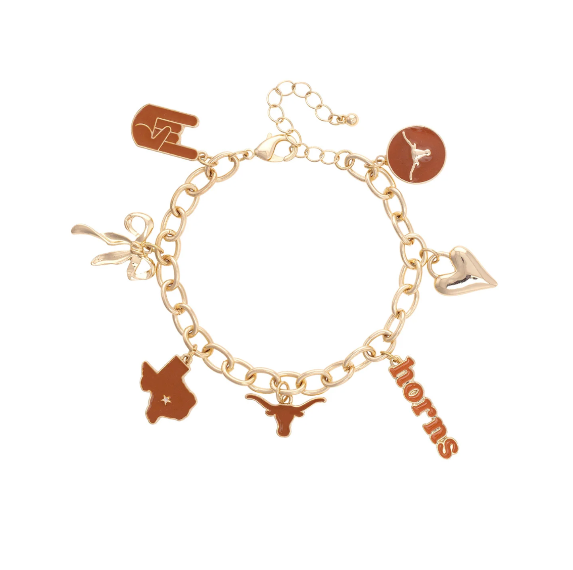 Team spirit in style with the Enamel Icons Charm Bracelet. This shiny gold-plated bracelet features a fun mix of enamel charms, including the iconic logo and other team-themed symbols. It's the perfect playful accessory to stack on for game day or wear as a spirited statement all season long.