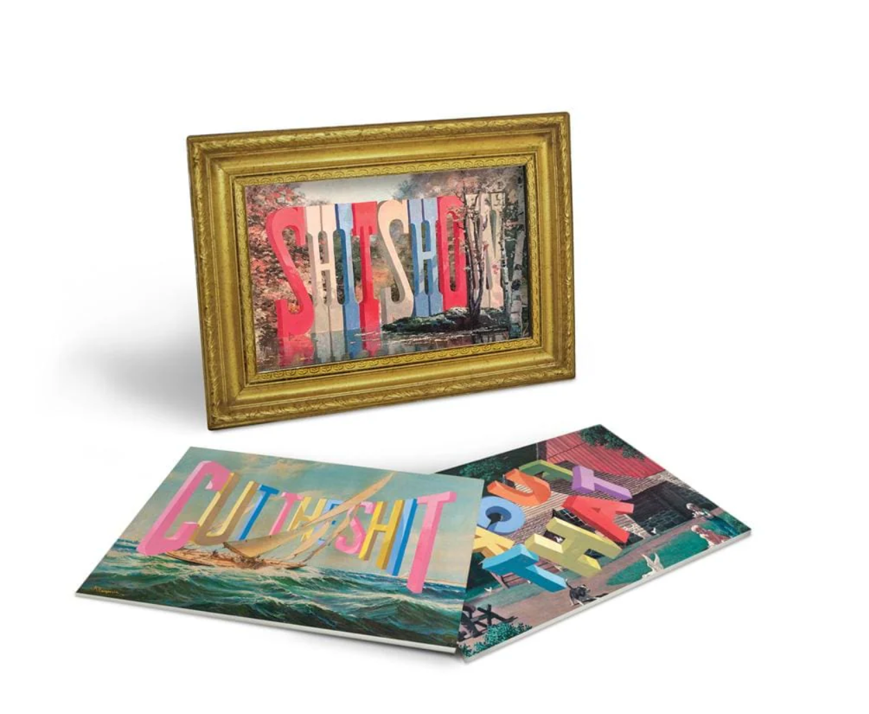 Wayne White is a multimedia artist whose paintings integrate large, humorous phrases into vintage thrift store paintings. These giant, colorful letters are here to display exactly what you want to say, especially when life is a shitshow. The Daily Shitshow features 15 original (and foul-mouthed!) artworks in an exciting new format. The interchangeable art cards sit inside a freestanding gold printed frame for truly dynamic desk art. Each 3 x 5" card is made of sturdy paperboard.
