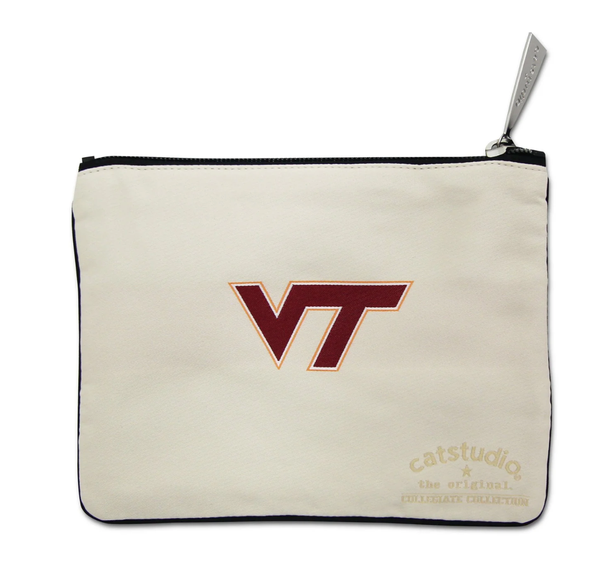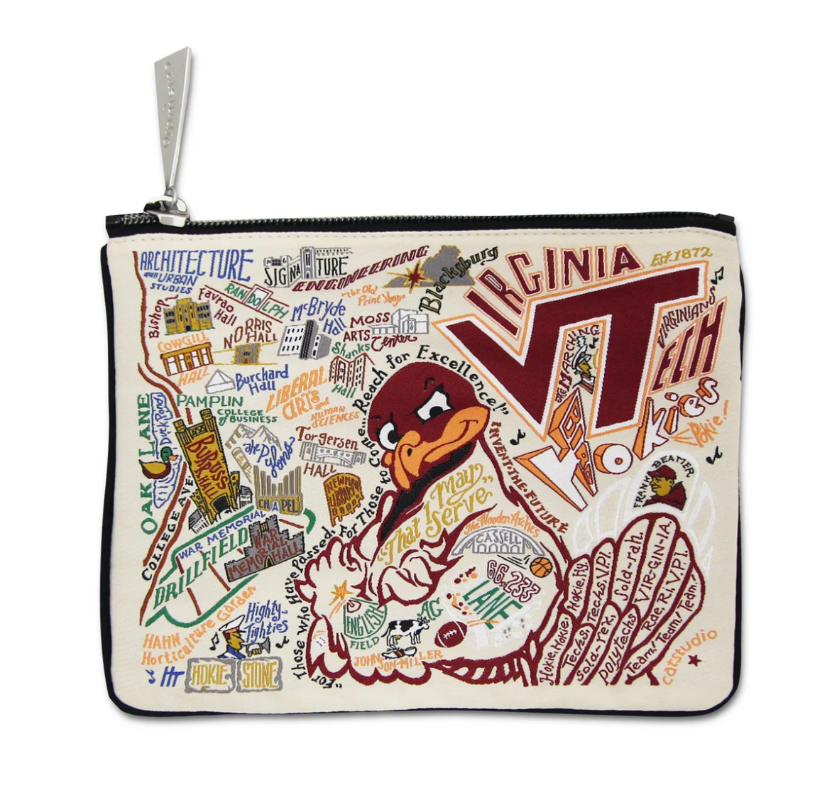 Our original design is uniquely woven (not printed!) into a handy-sized zip pouch - perfect for toting your keys, cash & credit cards, cosmetics - all your small necessities! Complete with chic zipper and pull, and our signature Collegiate black lining. Conveniently sized at 5x7 inches.