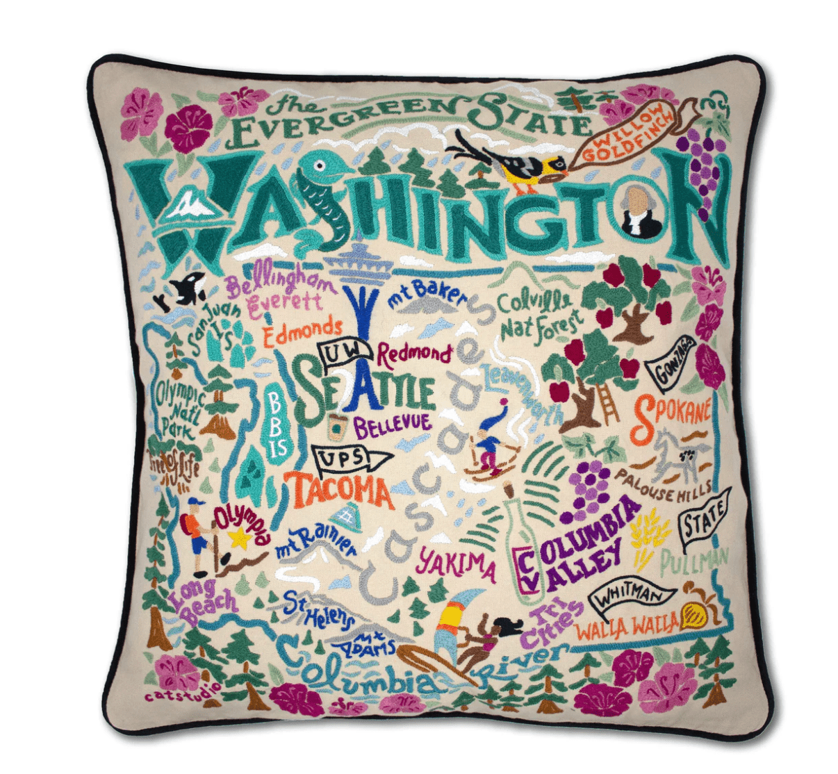 Washington Hand-Embroidered Pillow