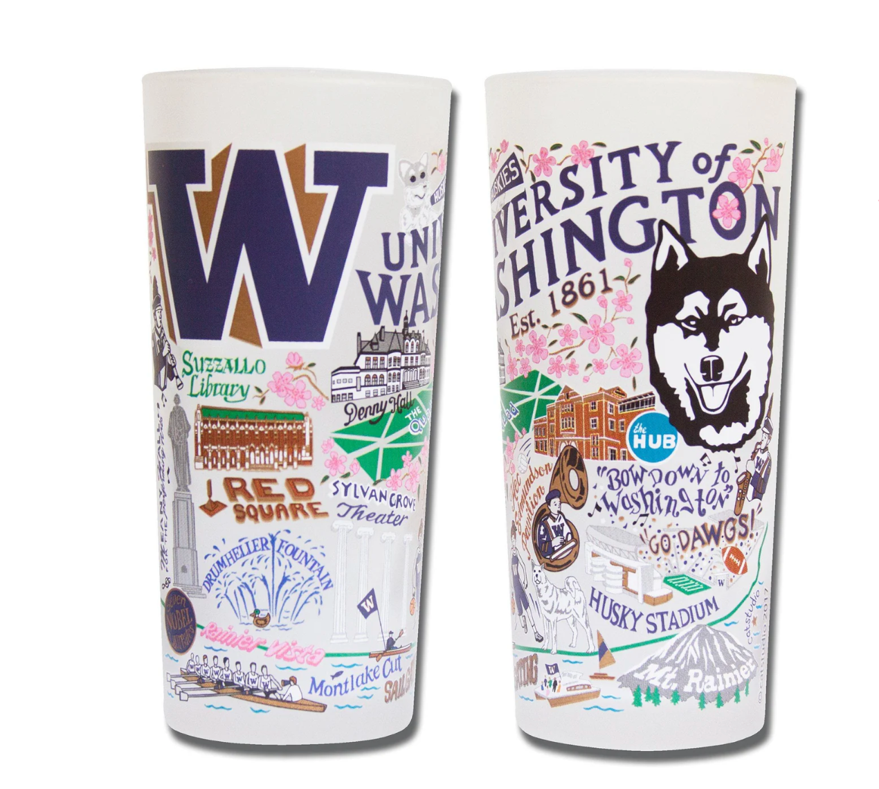 Our original design is amazingly rendered using organic inks of unlimited vibrant colors plus silver and gold. The high quality 15-ounce frosted glass is dishwasher safe. Cheers and bottoms up!